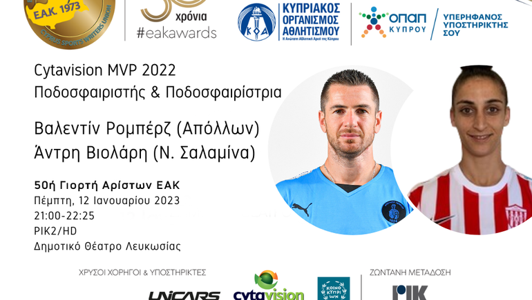 Το Έπαθλο Cytavision MVP Ποδοσφαιριστής και το Έπαθλο Cytavision MVP Ποδοσφαιρίστριας για το 2022 θα δοθούν σε Βαλεντίν Ρομπέρζ και Άντρη Βιολάρη αντίστοιχα.